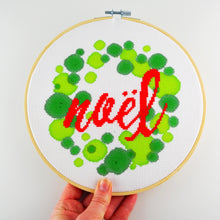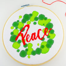 Choose from five different words: Joy, Peace, Hope, Noël or Holly  in either 28ct evenweave or 14ct aida in the following colours (see images for colour examples):
